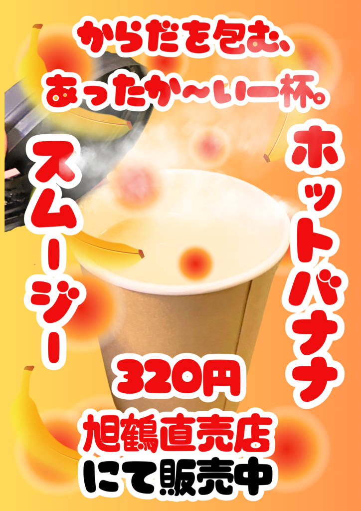 また、直売店限定で「ホットバナナスムージー」を販売しております。